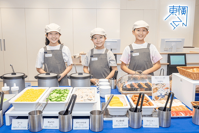 東横インは、「ホテル」パビリオンでの体験を通して、こども達が、さまざまなおもてなしの心、おもてなしが多くのスタッフの連携により成り立っていることに気づくとともに、「ホテル」は人々を笑顔にし、感動を与えられる場であると実感してくれることを願っています。