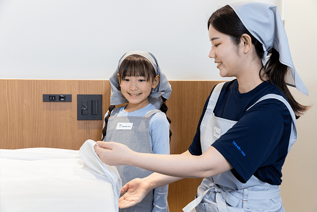 「ホテル」パビリオンで、こども達は「ホテリエ」「メイクスタッフ」「パントリースタッフ※」の仕事を体験できます。