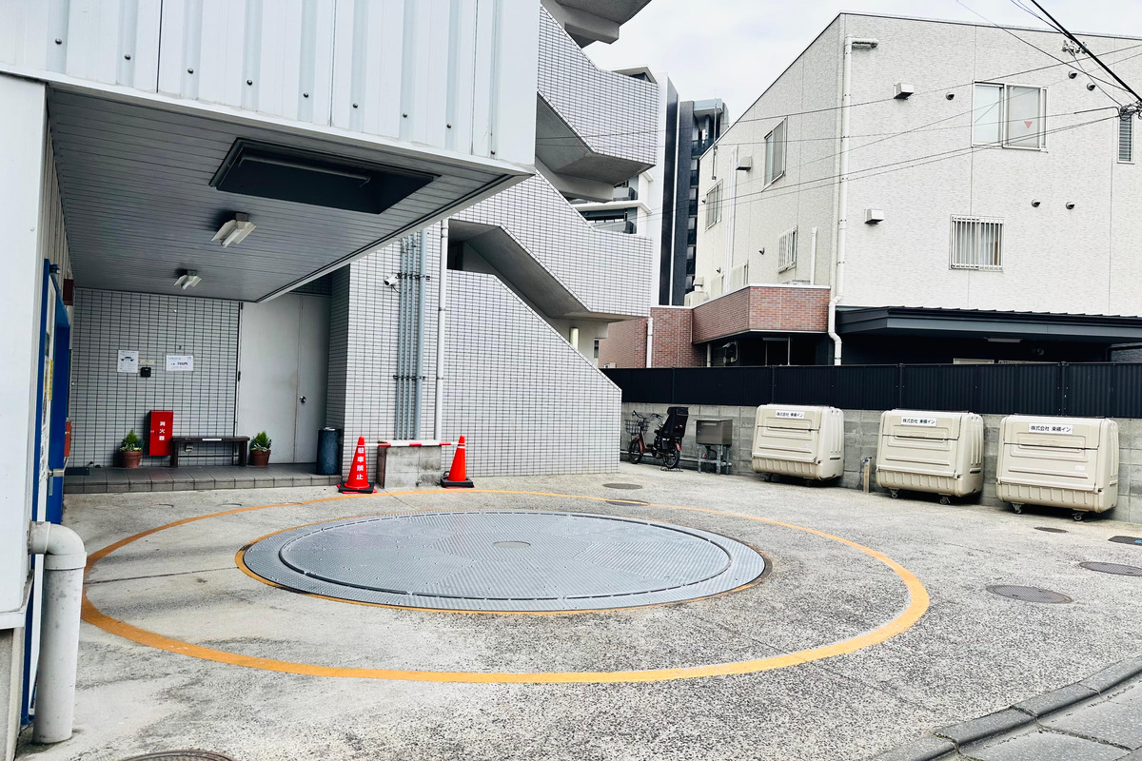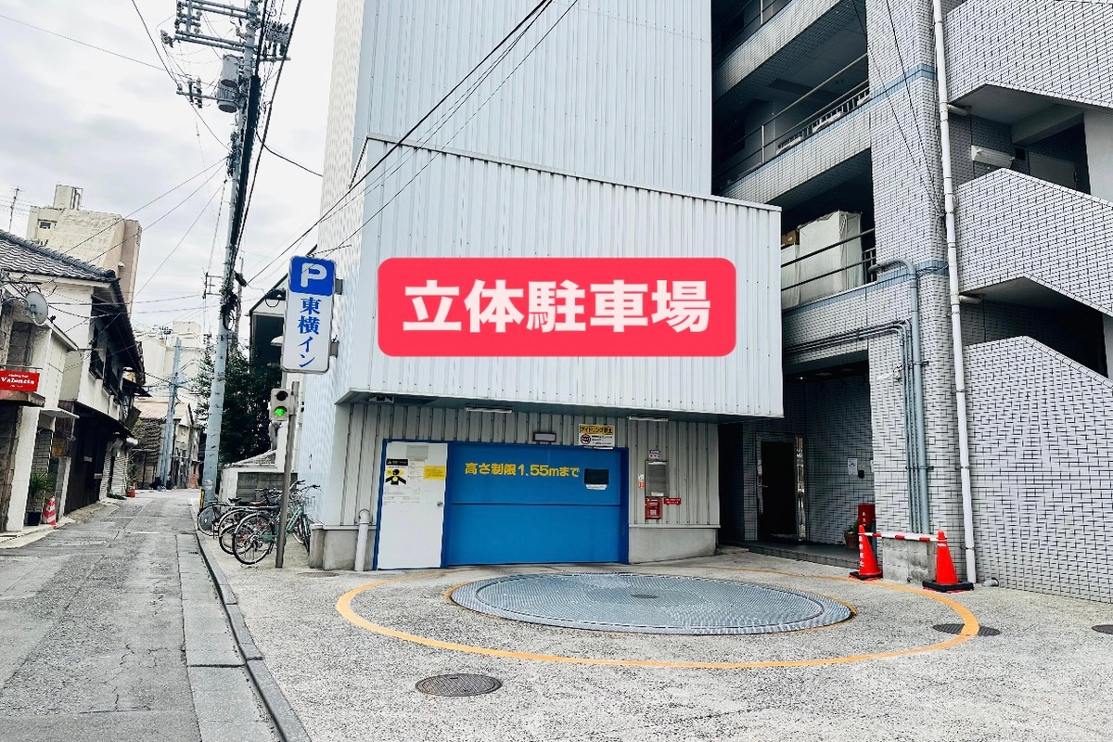 まっすぐ進んでいただくと、左側に立体駐車場がございます。