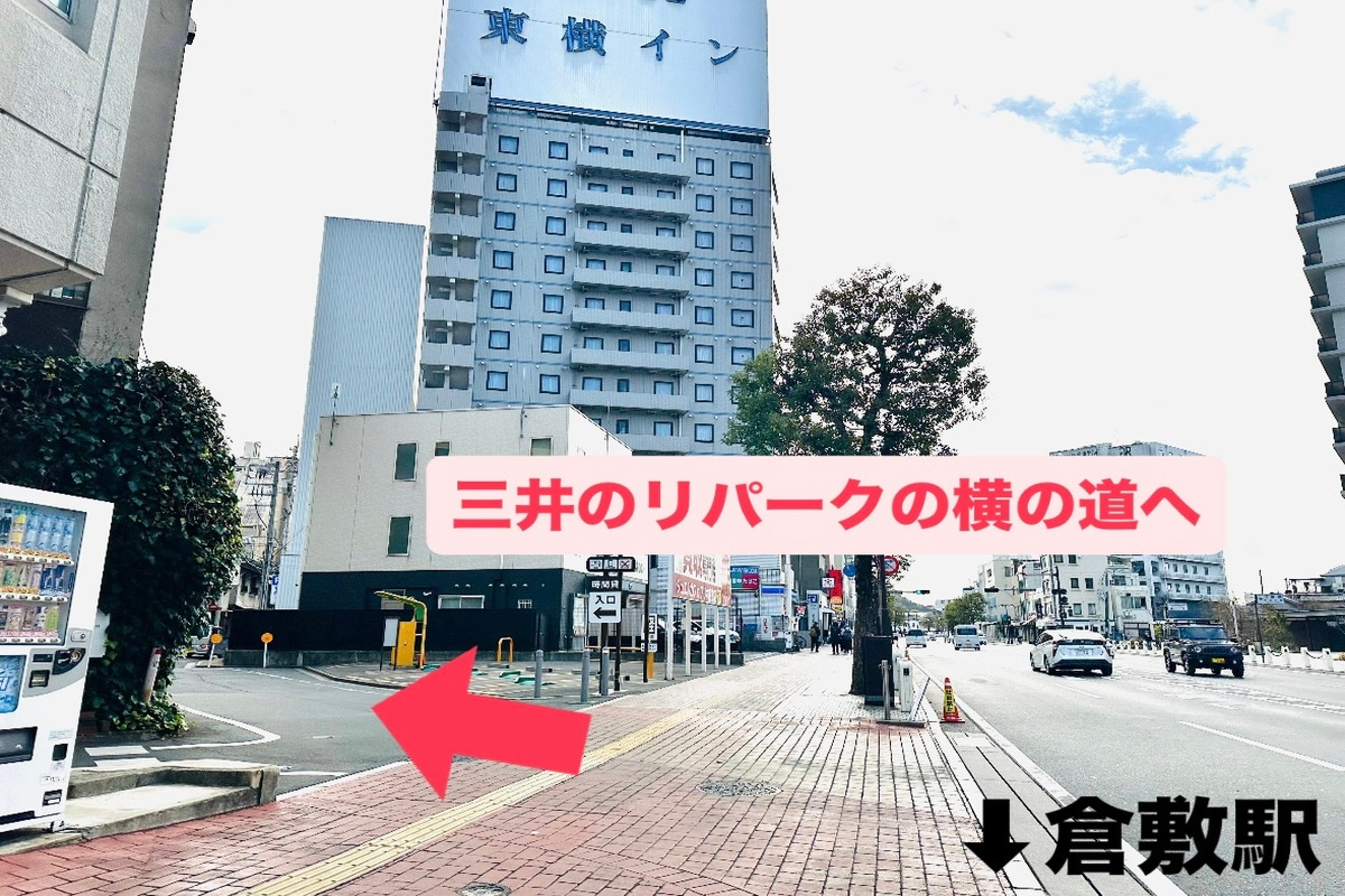 ホテル手前の「三井のリパーク駐車場」横の道を左折します。